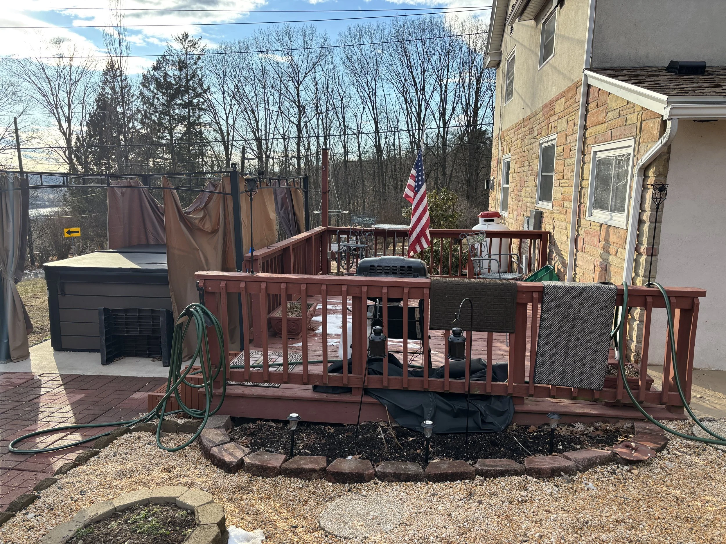 The front - We tore off her masonry stoop and are framing a beautiful front porch.